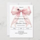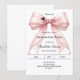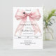 Celebrate your achievement with this elegant pink bow graduation invitation. The design features a large, sophisticated bow with ribbon adorned with delicate pearl strings and a subtle mortarboard icon. It is the perfect choice for high school or college seniors looking for a feminine and chic announcement.