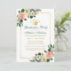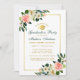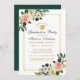 Watercolor Pink White Tropical Floral and Gold Graduation Party Invitation Card - Green Back, Green & Gold Text