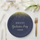 Graduation Party Platinum Gold Confetti Black Inv Paper Plate