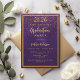 A modern and stylish invitation for a graduation party. A deep purple background and golden confetti rain. The purple color is uneven. With a faux gold frame. Template for name and party details. The text Graduation and the name are written with modern handlettered style script. Golden letters.