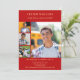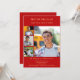 Create your own unique photo collage. Use four, 4 of your favourite photos. Personalise and add a name and party details. Red background colour.