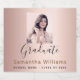 For the graduation party. A feminine and girly rose gold, pink gradient background. Personalize and add her photo, name and school name, year.