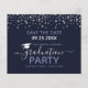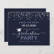 Elegant silver confetti highlights on the top and bottom border. All text is adjustable and easy to change for your own party needs. Great elegant save the date graduation template design. High School or College.