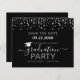 Elegant silver confetti highlights on the top and bottom border. All text is adjustable and easy to change for your own party needs. Great elegant save the date graduation template design. High School or College.