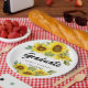 Sunflower graduation custom paper plates featuring hand lettering & calligraphy style display text