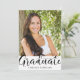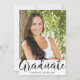 Modern graduation party photo invitation featuring a chic calligraphy script typography GRADUATE title in black and white with your party invitation details on the back. ASSISTANCE: For help with design modification, personalisation or colour change, contact the designer BEFORE ORDERING via the Zazzle Chat MESSAGE tab below or email makeitaboutyoustore@gmail.com.