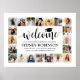 Add a personalised touch to college or high school graduation party decorations with a stylish photo collage 18"x24" welcome poster. The pictures and all wording on this downloadable sign template are simple to customise, and colours are easy to change with the Zazzle design tool. The black and white design features trendy handwritten script calligraphy, chic modern minimalist typography, and 20 square photos of your choice, such as senior pictures or images from the commencement ceremony. This printable graduation poster is an elegant way to welcome friends and family to a special day celebration. Congratulations to the graduate!