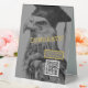 A memorable way to treasure life's events. Personalised graduation party tabletop sign with QR code featuring custom eagle grad design. Add your graduate's name and class year. Use the QR code for a website, college fund (among others). Easy to use template. Black and gold colour hues with eagle grad design. Enhance your graduation celebration. Use the template to personalise.