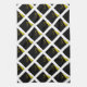 Unique graduation party towel featuring black and gold grad cap design pattern.