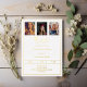A modern and stylish white and gold invitation for a graduation party. Add 3 photos. Decorated with a graduation cap. Personalize and add a name, and the details. Real gold foil text.