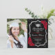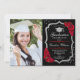 Graduation party invitation with your photo. Features script font, red roses, tassel and confetti. Elegant black white red design with faux glitter silver. Perfect for an elegant celebration.