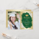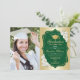 Graduation party invitation with your photo. Features script font, white roses, tassel and confetti. Elegant green, white design with faux glitter gold. Perfect for an elegant celebration.