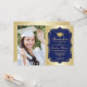 Graduation party invitation with your photo. Features script font, tassel and confetti. Elegant navy blue design with faux glitter gold. Perfect for an elegant celebration.