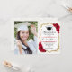 Graduation party invitation with your photo. Elegant design in white, gold and red. Features script font, red roses, tassel, faux glitter gold and confetti. Perfect for a stylish celebration.