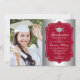 Graduation party invitation with your photo. Features script font, tassel and confetti. Elegant red design with faux glitter silver. Perfect for an elegant celebration.
