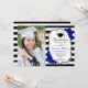 Graduation party invitation with your photo. Features black white stripes, script font, royal blue roses, tassel and confetti. Elegant black white royal blue design with faux glitter silver. Perfect for an elegant celebration.