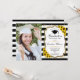 Graduation party invitation with your photo. Features black and white stripes, script font, sunflowers, tassel and confetti. Rustic design with faux glitter gold. Perfect for an elegant celebration.
