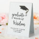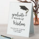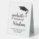 Graduation Party Words Of Wisdom Guest Advice table display. Have your family, friends and guests sign memory keepsake graduation Words of Wisdom cards. Features script style typography with graduation cap. Monogrammed with graduates name and class of (year). Creative and unique party idea.