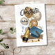 Grey, blue, and beige balloons adorned with sparkling confetti, complemented by a blue top hat and a champagne bottle with a gold label. A stylish graduation card designed for that special graduate, showcasing their name and graduation year prominently on the front. Features a dedicated space for your personalised message, making the celebration even more memorable.