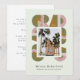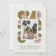Retro-style, yet modern, graduation announcement photo card party invitation that features the word "GRAD" designed with geometric shapes in various colors that form a border around the photo of the graduate. Retro colors—green, pink, brown—add to the card's retro style.