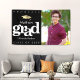 Announce to the world that your favourite grad has reached their milestone with this stunning, simple, modern, personalised photo banner. Bold, graphic, white typography and a faux gold foil cap icon overlay a black background. On the right hand side, add a photo of your choice. Personalise the custom text with your graduate’s name, mascot or school name, and class year. Choose from indoor or outdoor options. Matching invites, thank you cards, cap toppers, fans, napkins, plates and other graduation goodies are also available in this trendy and stylish collection. Guaranteed to preserve cherished memories of their special occasion!
