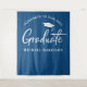 A modern classic blue photo booth backdrop tapestry for his or her graduation party. "Congrats To Our 2023 Graduate" is written in a mix of simple white typography and a large white script. Personalise with his or her name and class year in simple white typography. You can change the colours to your school colours by editing in the design tool.