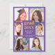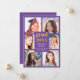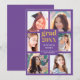 Send your family and friends a modern personalised photo collage graduation card to wow them. This modern template design features six photos for you to change to your own framed in purple. In the centre in faux gold and white typography is the word "Grad" with the year, your name and school to personalise. The back of the card is purple. Designed by Susan Coffey.