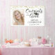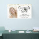 Honour and celebrate your graduate with this photo banner sign personalised with one picture, their name, class year and the title CONGRATS TO OUR GRAD in elegant calligraphy script typography in black on an editable white background accented with a gold confetti border. ASSISTANCE: For help with design modification or personalisation, transferring the design to another product or if you would like coordinating items, contact the designer BEFORE ORDERING via the Zazzle Chat MESSAGE tab or email makeitaboutyoustore@gmail.com.