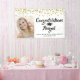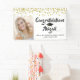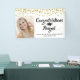 Gold confetti and CONGRATULATIONS (graduate's name) in a brush script font in black (the text colour can be changed to coordinate with your school colours or party theme decor). Honour and celebrate the graduate and welcome party guests with this banner sign featuring a photo of the graduate for a young man or woman. Personalise it with their name, school and graduation year or whatever text you desire. PHOTO TIP: For fastest/best results, choose a photo with the subject in the middle and/or pre-crop it to a similar shape as shown BEFORE uploading and it will fill in the photo space provided perfectly. Contact the designer if you’d like this design modified, on another product or would like coordinating items to complete your party ensemble.