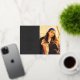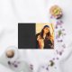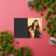 Line art "graduation" foil script at left with your custom text. Photo at right. Dark grey background.