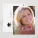 Send an elegant thank you postcard to your family and friends for their graduation gifts to you. This design features your photo on the front with a modern script which reads. "Love & Thanks" in black typography with your name, school, and class/year below to personalise. The back of the card has an illustration of a graduation cap and scroll with a message you may customise. Designed by artist ©Susan Coffey. Photography © Storytree Studios, Stanford, CA.