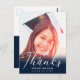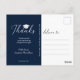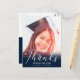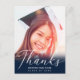 Thank your family and friends for their graduation gifts and well wishes with this elegant custom photo postcard. This chic design template features your photo with an blue overlay at the bottom and a modern hand lettered white script which reads "Thanks" and your name, and class/year below. The back of the card has a thank you note and signature for your to personalise an a green background. Congratulations on your graduation! Designed by artist Susan Coffey.