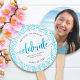 Stay cool while supporting your favourite grad as she receives her diploma, with this keepsake hand fan. The front boasts stunning, modern, sparkly faux turquoise glitter handwritten script calligraphy on a light turquoise and white striped background with faux turquoise glitter dots. Personalise the custom text with your grad’s name, high school, and class year. Her custom photo is on the back. Matching invites, thank you cards, cap toppers, napkins, plates and other graduation goodies are also available in this trendy and stylish collection. Guaranteed to preserve cherished memories of her special occasion!