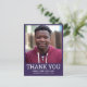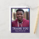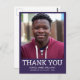Thank your family and friends for their graduation gifts and well wishes with this simple and elegant custom photo postcard. This modern design template features your photo at the top framed in purple with your name, school and year to personalize in white typography. The back of the postcard has a thank you note and signature for your to customize accented by a graduation cap and diploma. Congratulations on your graduation! Designed by artist ©Susan Coffey.