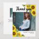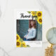 Sunflower graduation photo announcement featuring hand lettering & calligraphy style display text
