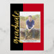 The front includes a foil stamp of "graduate" along with a photo and name of the student who is graduating. A colour block of school colours surrounds the vertical photo. The font is a rustic modern paintbrush look with your choice of foil colour. Add Graduation Announcement plus party information. Add any year to personalise this elegant and modern design. This can be used for any graduate - high school, college, grad school, med school or even trade school.