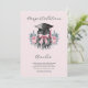 Feminine graduation congratulations card with illustration of female graduate wearing a grad cap and a pink bow in her hair. Edit using the design tool to change hair colour (brown, blonde, red or black) and feel free to keep or edit the poem. Personalise with your graduate's name and your sign off. Order professionally printed or as a digital download to text or send digitally.