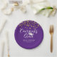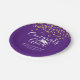 Modern purple graduation party paper plates featuring gold glitter confetti and a calligraphy script typography title design of CONGRATS GRAD in white and personalised with your graduate's name, school and class year and/or your custom text. CHANGES: Change the background colour to a school colour or coordinating party theme colour or the text font style, colour, size and placement by clicking on CUSTOMIZE FURTHER in the PERSONALIZE section. ASSISTANCE: For help with design modification/personalisation, colour change, transferring the design to another product or if you would like coordinating items, contact the designer BEFORE ORDERING via the Zazzle Chat MESSAGE tab or email at makeitaboutyoustore@gmail.com.