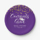 Graduation Purple CONGRATS GRAD Script Confetti Paper Plate