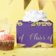 Graduation wrapping paper featuring a repeating pattern of CLASS OF YEAR (editable year) in gold with a faux metallic gold foil graduation cap or mortarboard against your choice of colour background (shown in an editable purple). Use for wrapping graduation gifts or as display backdrops or table coverings at the graduation party. ASSISTANCE: For help with design modification or personalisation, colour change, resizing, transferring the design to another product or if you would like coordinating items, contact the designer BEFORE ORDERING via the Zazzle Chat MESSAGE tab below or email makeitaboutyoustore@gmail.com.