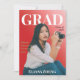 In a straight off the press fashion, announce your graduate's achievement with a magazine style announcement card. Use Zazzle's BG Remover, your own photo editing software, or smart phone to remove the background from the photo. Add the graduate's class year, school, and name. If desired choose the "Add Text" option to add a quote, plans, etc.. The red background goes from light to dark, providing more emphasis for the student's picture. This card features different colors and fonts for the text; however, those may be changed.