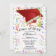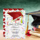 Graduation Red Grad Cap Diploma Confetti Party Invitation