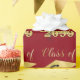 Graduation wrapping paper featuring a repeating pattern of CLASS OF YEAR (editable year) in gold with a faux metallic gold foil graduation cap or mortarboard against your choice of colour background (shown in an editable red). Use for wrapping graduation gifts or as display backdrops or table coverings at the graduation party. ASSISTANCE: For help with design modification or personalisation, colour change, resizing, transferring the design to another product or if you would like coordinating items, contact the designer BEFORE ORDERING via the Zazzle Chat MESSAGE tab below or email makeitaboutyoustore@gmail.com.