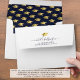 Personalised modern graduation stationery envelopes featuring a faux metallic gold graduation cap pattern on a navy blue background inside and preprinted with your graduate's return address in navy blue and accented with a faux metallic gold graduation cap to coordinate with your graduate's invitation, announcement or thank you card. The sample shows a chic fancy script typography for the name you can change to another font style as desired. Make changes in EDIT. ASSISTANCE: For help with design modification or personalisation, colour change, resizing, transferring the design to another product or if you would like coordinating items, contact the designer BEFORE ORDERING via the Zazzle Chat MESSAGE tab or email makeitaboutyoustore@gmail.com.