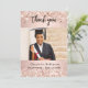 A rose gold gradient background decorated with confetti. Personalise and add your photo and thank you note.