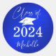 Modern faux brushed metallic royal blue graduation stationery envelope seals or favour stickers with a chic calligraphy script CLASS OF and editable year with a white graduation cap and your graduate's name (in your choice of font styles (shown in handwritten script). Add to graduation invitations, announcements and thank-you cards or use for graduation party thank-you favour stickers. ASSISTANCE: For help with design modification/personalisation, colour change, transferring the design to another product or if you would like coordinating items, contact the designer BEFORE ORDERING via the Zazzle Chat MESSAGE tab or email at makeitaboutyoustore@gmail.com.