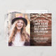 Announce your high school graduation to your family and friends in style with this rustic Christian photo announcement postcard.This design template features your photo on the left and on the right is a bible verse in a modern white script typography that reads "God has more in store for you than you can even imagine. Ephesians 3:20" with your class/year, name, school name, and date for you to personalise on a faux cherry wood background decorated with string lights. The back of the postcard has more of your graduation and party details. Congrats on your graduation! Designed by artist Susan Coffey.