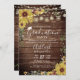 Rustic, country sunflower graduation party invitation with string lights, mason jar lights and party lanterns and trendy handwritten script typography in white against a wood plank background. Personalise with your graduate's class year and school name in the invitation text. ASSISTANCE: For help with design modification or personalisation, transferring the design to another product or if you would like coordinating items, contact the designer BEFORE ORDERING via the Zazzle Chat MESSAGE tab or email makeitaboutyoustore@gmail.com.