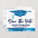 Elegant blue marble paint effect creates a striking graduation save the date card. Designed with grads in mind it includes a graduation hat or mortar board. Nice way to let your family and friends know to save the date for a gradation or graduation party.