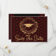 I enjoy designing art work for graduations. This is wonderful and unique art deco style with elegant classic gold, black and red colours. Save the Date announcement card. Modern style text. Add your own message on the back of the cards giving details to your family and friends to save the date for a graduation ceremony, event, party or other occasion. Logo style design includes laurel leaves, stars and a graduation cap. Congratulations to the graduate.
